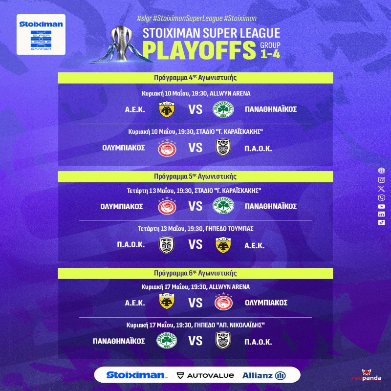 📅 Αναλυτικά το πρόγραμμα των playoffs