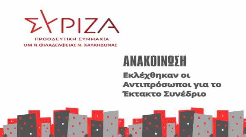 Την Κυριακή 3 Νοεμβρίου 2024 πραγματοποιήθηκαν οι εκλογές για την επιλογή των αντιπροσώπων για το έκτακτο συνέδριο από την Οργάνωση Μελών Νέας Φιλαδέλφειας- Νέας Χαλκηδόνας. Ευχαριστούμε όσους συντρόφους/σες έθεσαν υποψηφιότητα για σύνεδροι και αυτούς που συμμετείχαν με την ψήφο τους στην εκλογική διαδικασία.