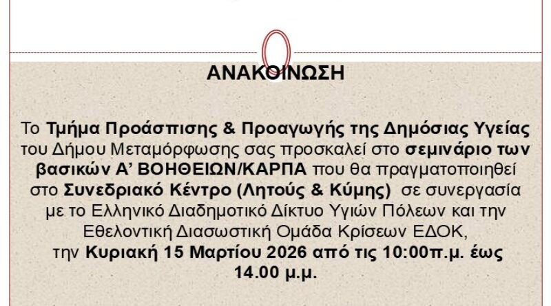 Δήμος Μεταμόρφωσης: Με επιτυχία ολοκληρώθηκε η ενημερωτική δράση για τις αναπτυξιακές προκλήσεις στην πρώιμη παιδική ηλικία
