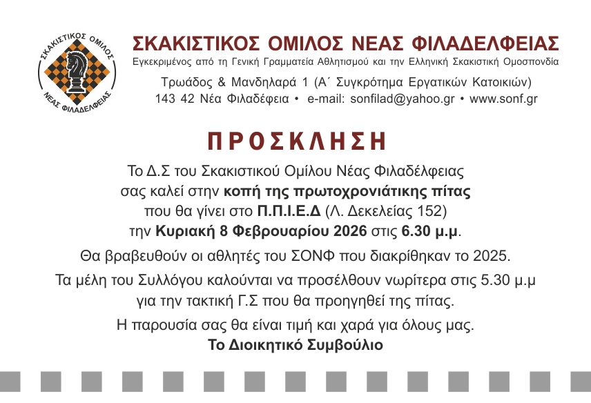 ΤΟΠΙΚΑ ΝΕΑ Την Κυριακή 8/2 ΓΣ και Κοπή πίτας του ΣΟΝΦ στο ΠΠΙΕΔ 3 Φεβρουαρίου 2026 Filadelfeia News Share this… Facebook Pinterest Twitter Linkedin Την Κυριακή 8/2 ΓΣ και Κοπή πίτας του ΣΟΝΦ στο ΠΠΙΕΔ Share: Facebook Twitter Pinterest Linkedin Google+ Email