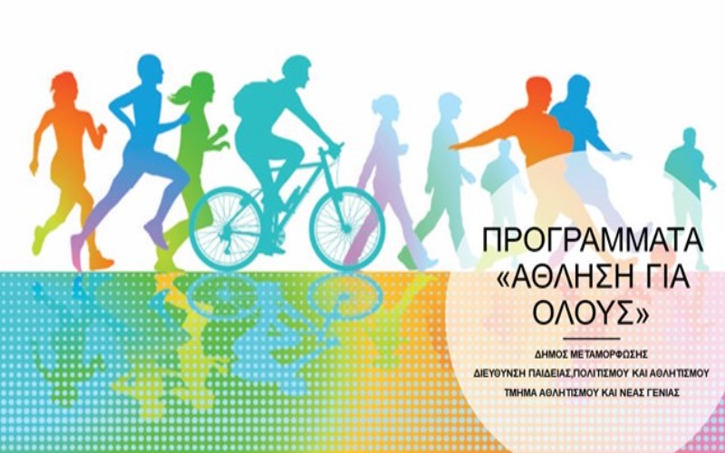 Σας ενημερώνουμε ότι ξεκινά η υλοποίηση των Προγραμμάτων«Άθληση για Όλους»στον Δήμο Μεταμόρφωσης. Αναλυτικά τα προγράμματα που ξεκινούν είναι: